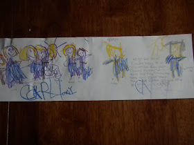 I asked Bunny to draw a picture about our day, here is what she did! She drew everyone who came, and we had to tape to pieces of paper together to put everyone on! :)